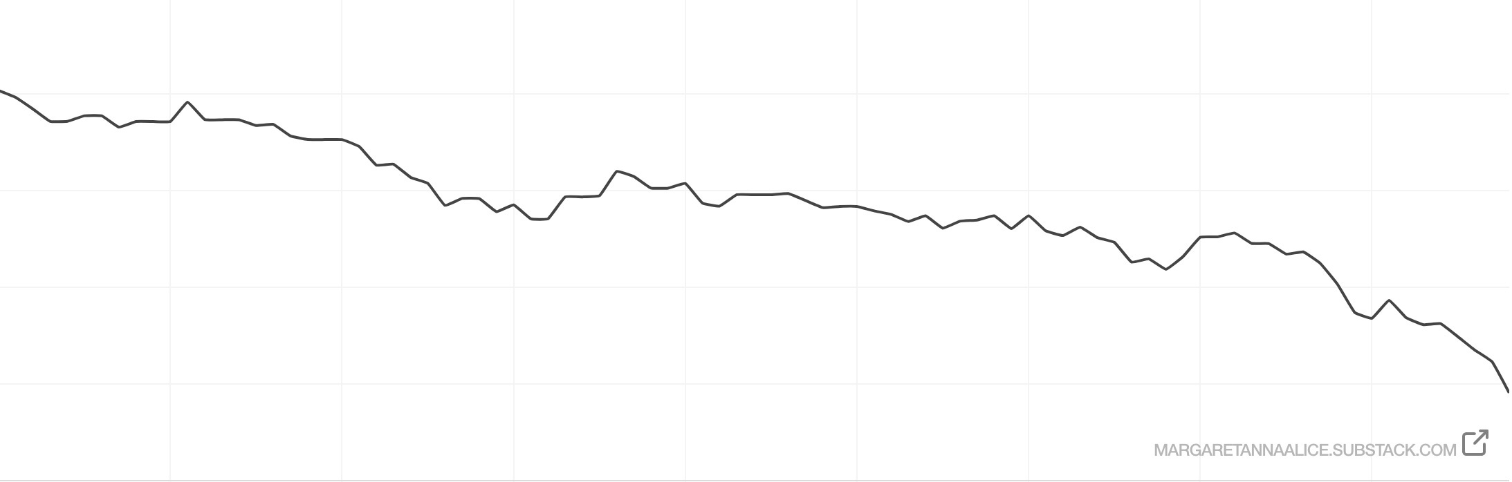 My paid subscriptions continue to plummet. I’ve lost 148 paid subscribers over the past year, many of those over the last ninety days as you can see from this chart documenting my declining income: