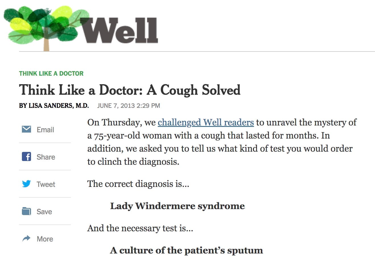 What’s funny is those questions turned out to be moot because the premise that Pseudomonas was causing her chronic cough was faulty.