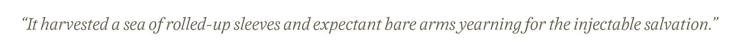 "Thus, the media environment became one long ad, whose overt goal was to turn every viewer into an unthinking, submissive, and very scared citizen." (And now, it seems, they've added "angry" and "vengeful" toward the unvaccinated to their list...which couldn't have been done without first accomplishing the former.)