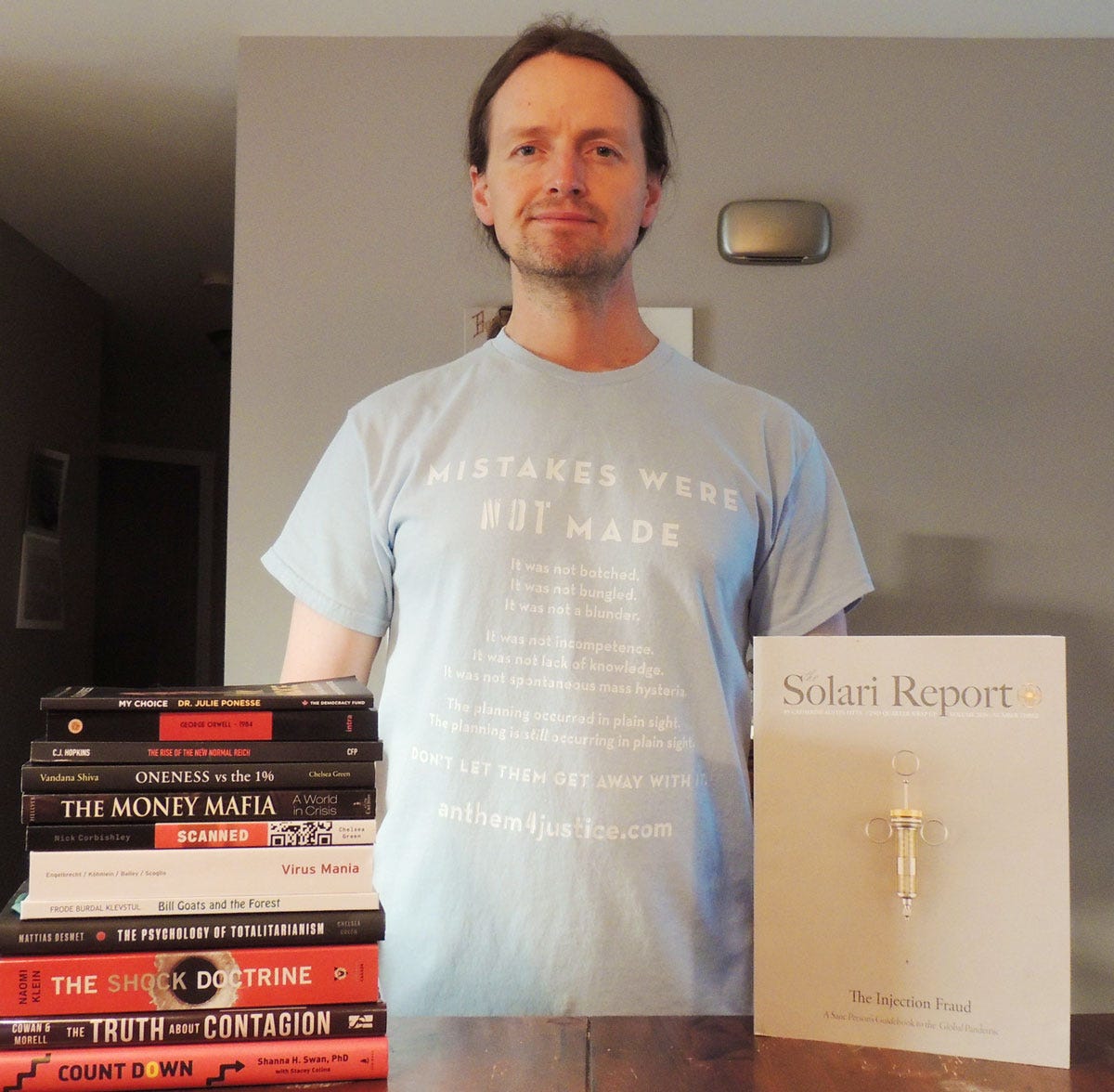 My dear friend and fellow freedom and truth warrior Gavin Mounsey wrote a magnificent article describing his attempt “to do my own small part to do my best to ensure that what occurred during the last 4 years will not happen again.” He shares images of himself wearing his Mistakes Were NOT Made t-shirt along with some of the books he found informative and inspiring, including the paperback of my dystopian fairy tale The Vapor, the Hot Hat, & the Witches’ Potion.