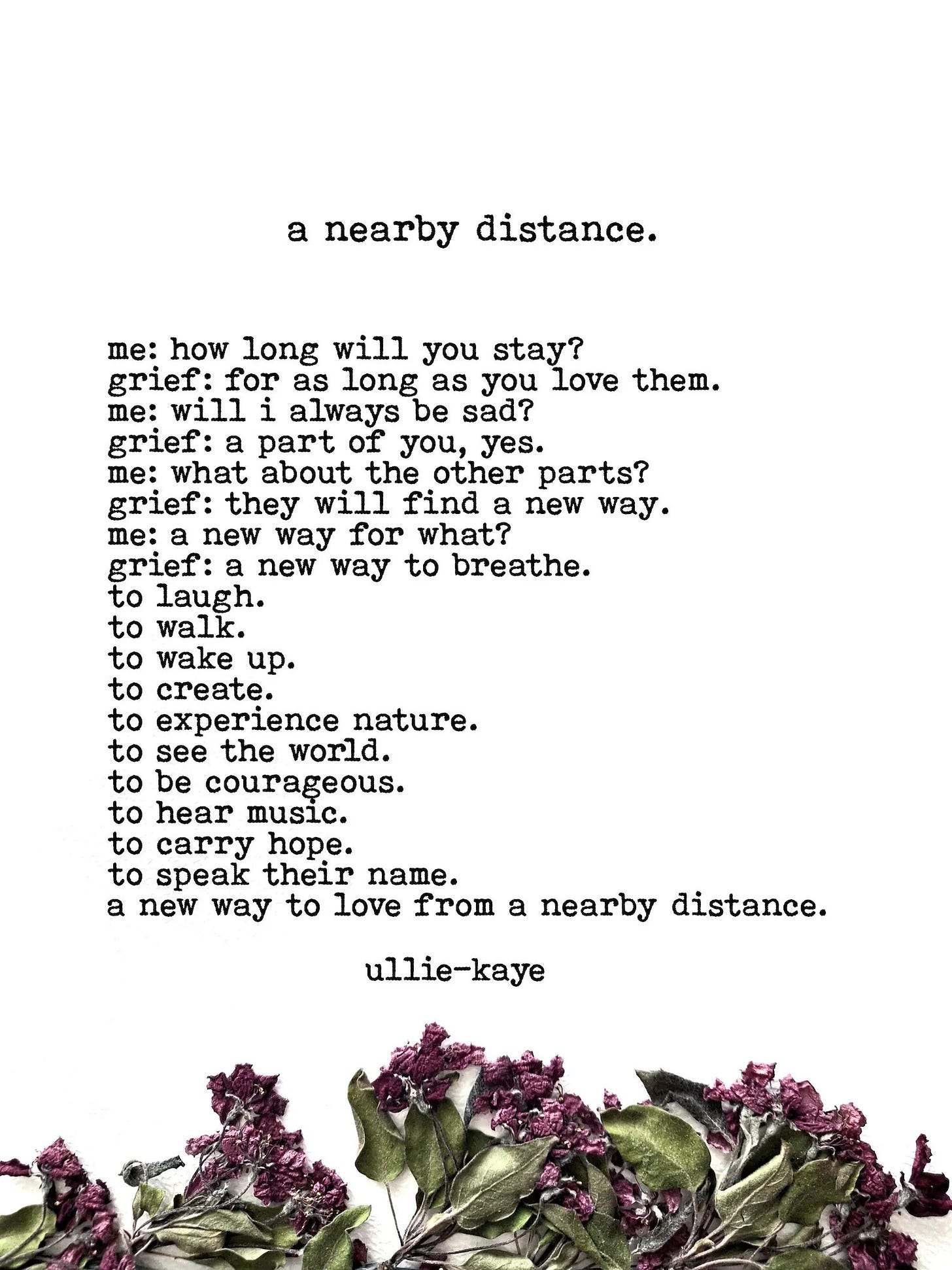 Reeling from his own fresh grief over his precious Mandy, Larry magnanimously reached out to offer me comfort, sharing the Ullie-Kaye poems a nearby distance and the antidote accompanied by the note: