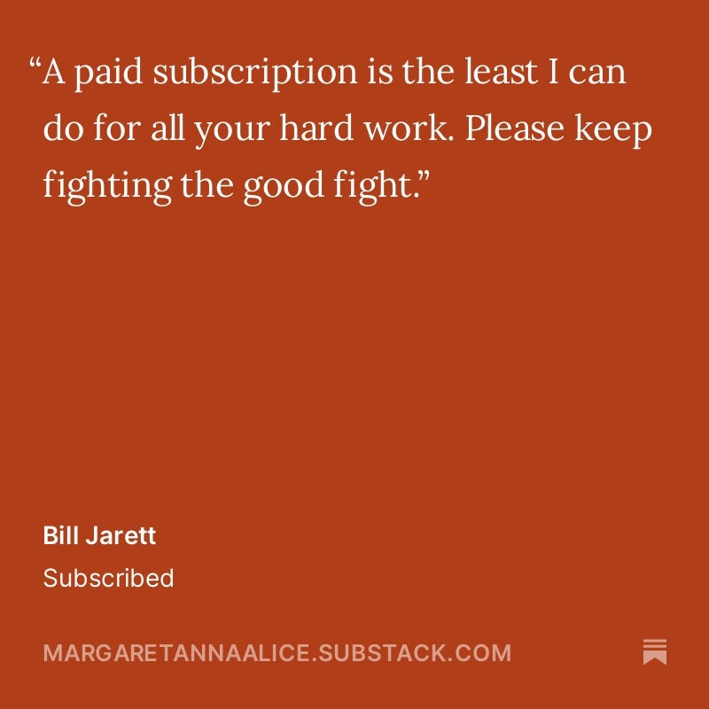 I especially want to thank those of you who have taken the time to write a private message to me when you subscribe. I read and cherish each note.