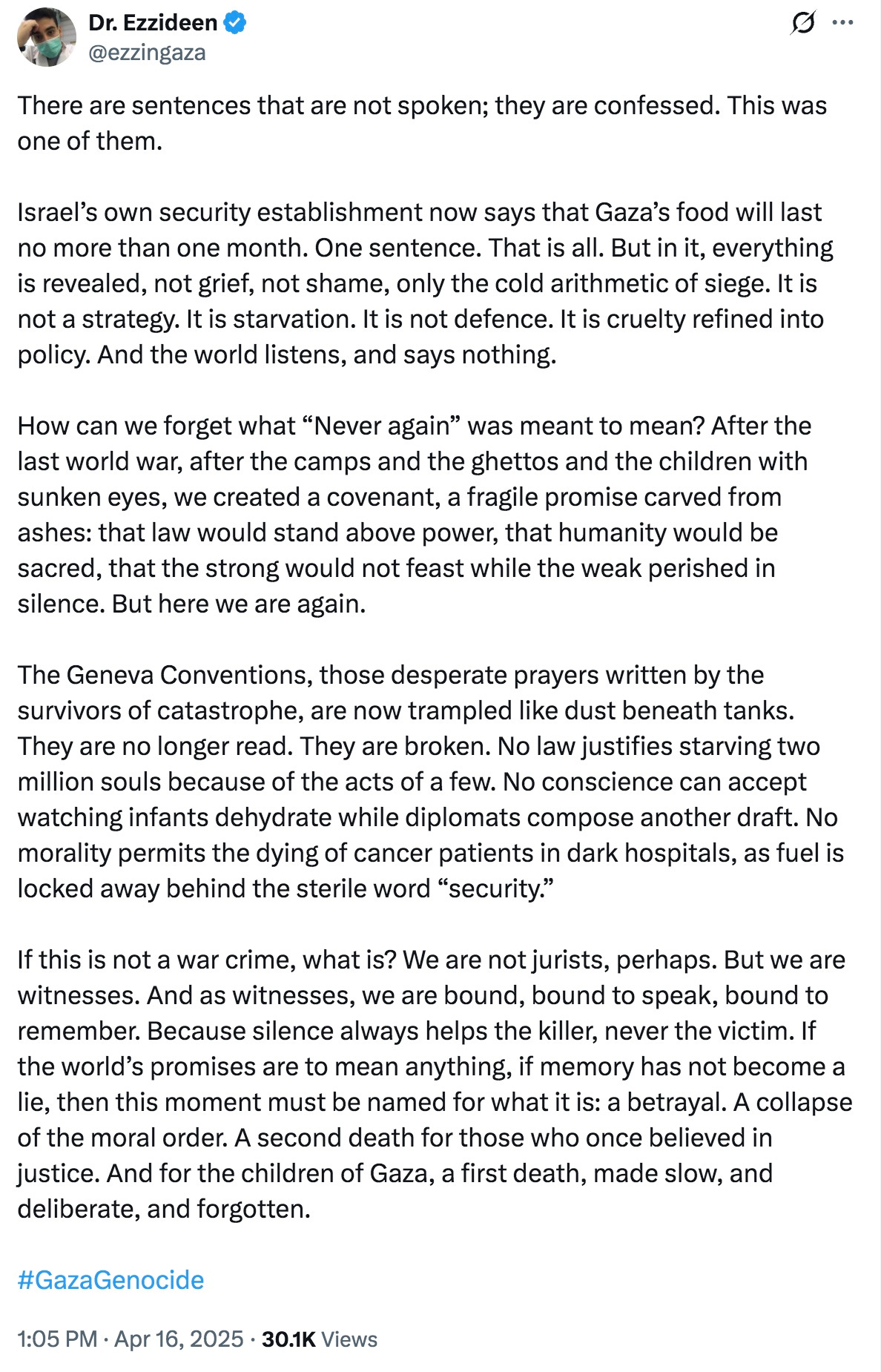 In no sense there is genocide in Gaza. The numbers you cite in this video are fakes by Hamas, at least a part of scenes are clearly staged. But it isn’t important. Even if the numbers were correct, it were not a genocide!