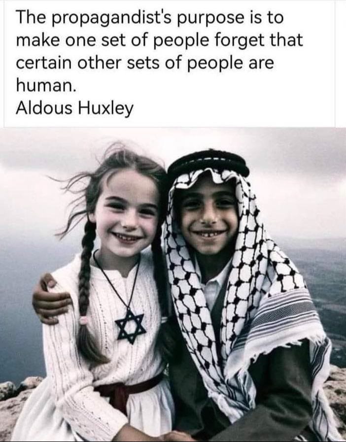 I think if governments/groups/leaders/propagandists got out of the way, individuals could meet each other as individual human beings, free of the dehumanizing propaganda engineered to turn us against each other. This applies to every war, every conflict, every atrocity, where it is always the cruelites using us as pawns. They want us fighting each other so we don’t notice how they are exploiting all of us for their own diabolical ends.