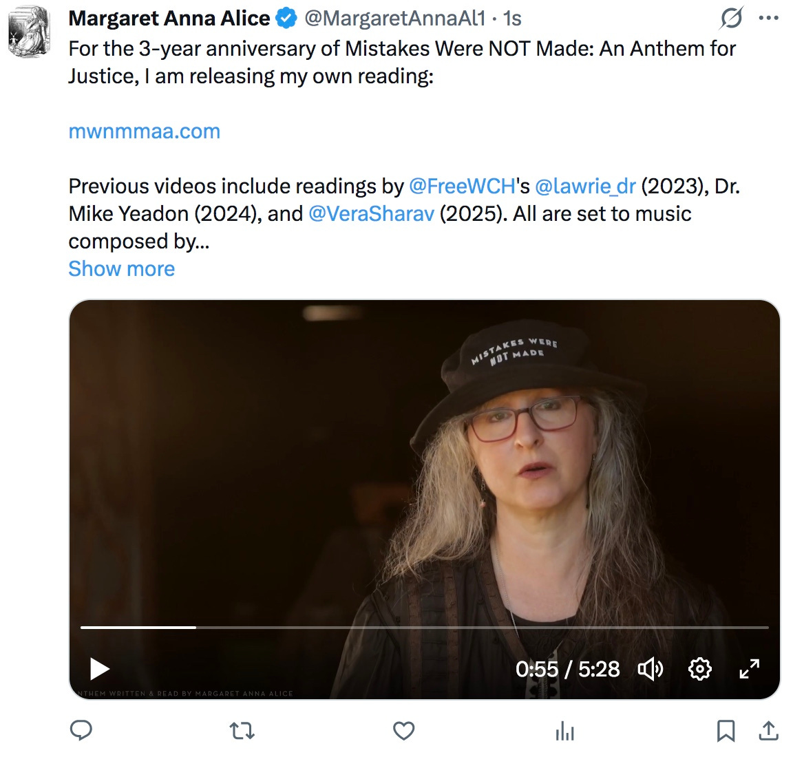 Please join me in blasting the convicting message that Mistakes Were NOT Made and holding the perpetrators of the Great Democide of the 2020s accountable.