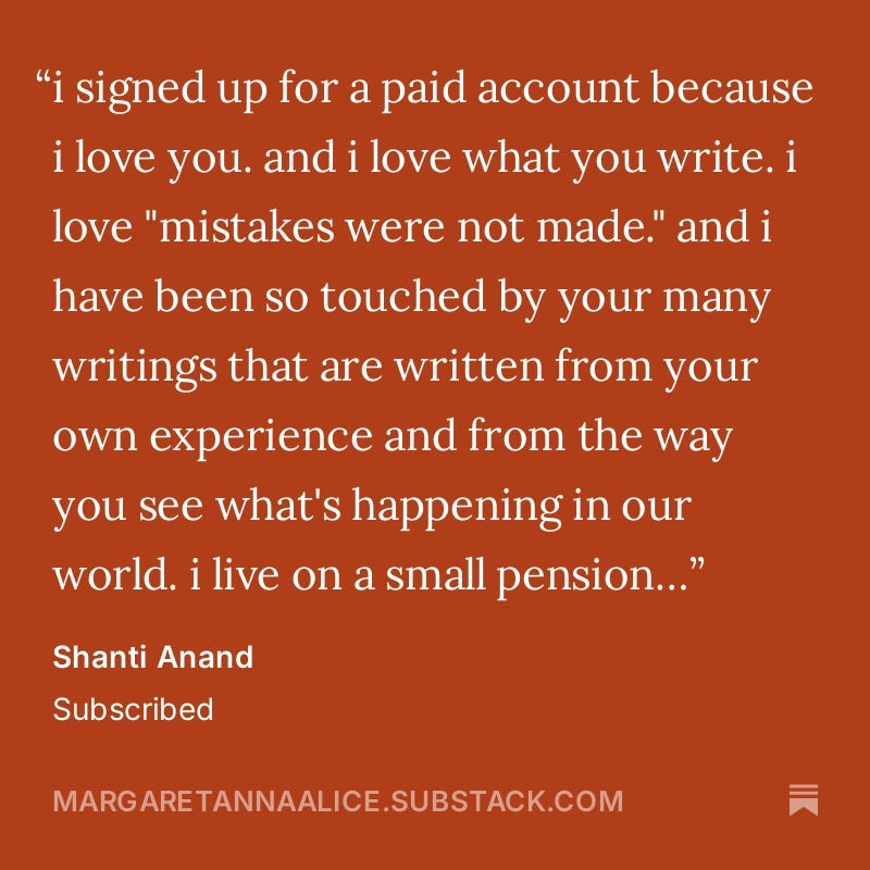I want to especially thank my karass of paid subscribers for making it possible for me to do the work I feel created to do.