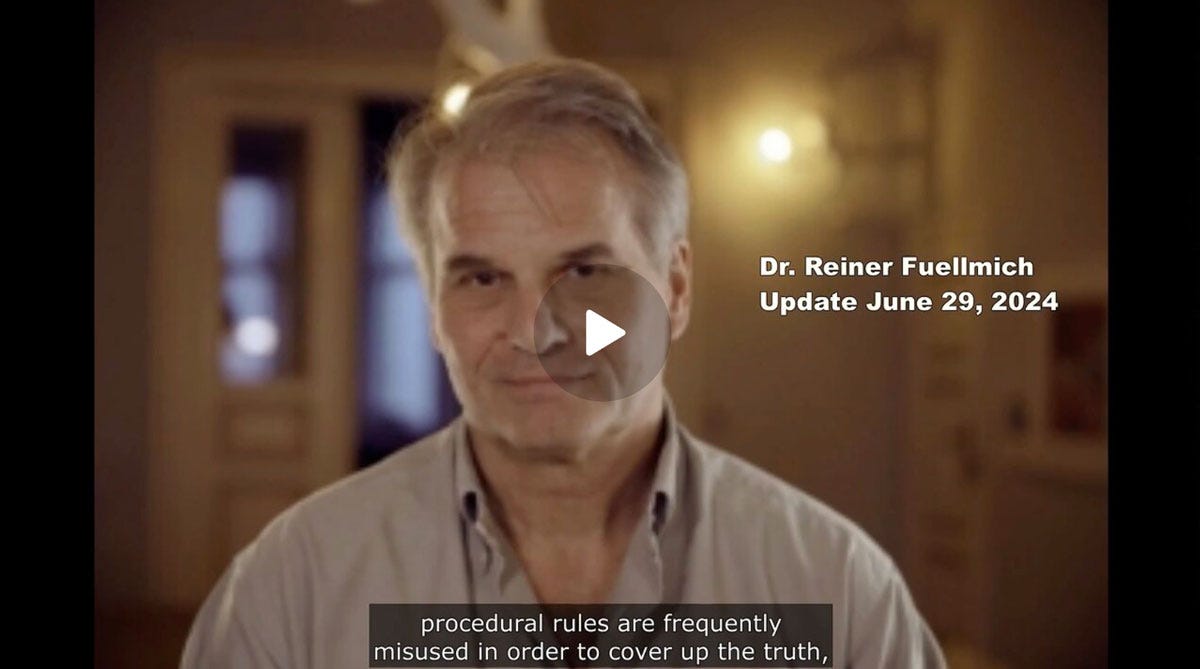 Assange is free at last, but Reiner remains a political prisoner in what appears to be a stitched-up case to discredit a truth-teller and intimidate fellow dissidents. As Celia Farber writes, “Now Let’s Imagine Reiner Fuellmich Also Set Free, Soon.”