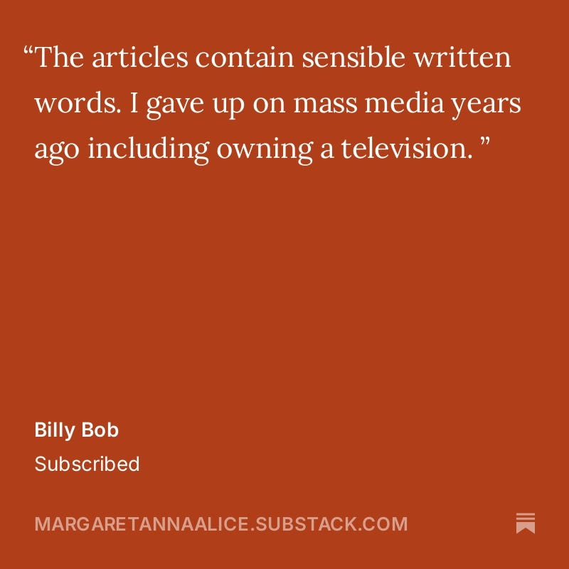 I especially want to thank those of you who have taken the time to write a private message to me when you subscribe. I read and cherish each note.