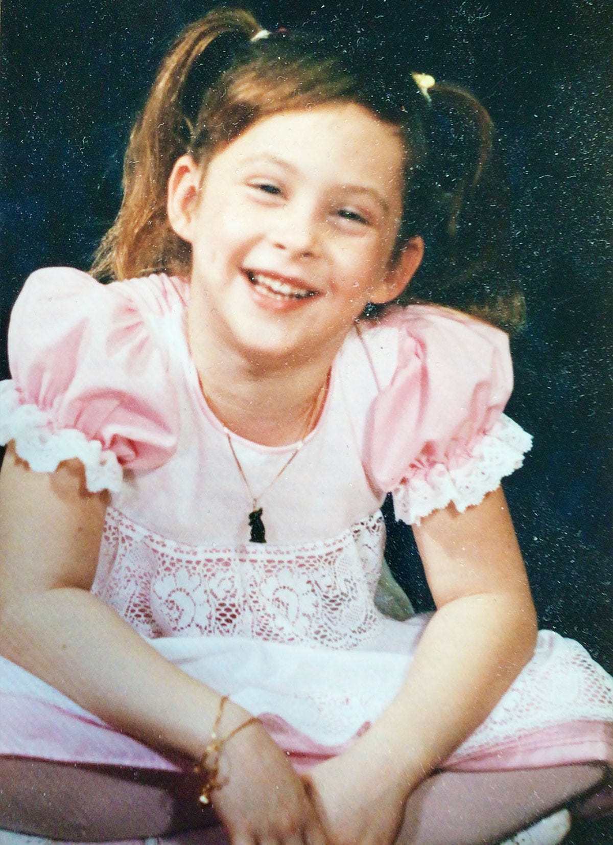 Her bed is covered with photos of her, teddies, little-girl dresses I bought all over the world, Bowie things (all three of us loved Bowie), hand-carved sharks from the Solomon Islands I had given her, and, in the center, her ashes in a box her husband chose. The ashes of her beloved dog, Brenna, are in there, too, as well as Queenie’s, a dog she rescued from a kill shelter whom we adopted.