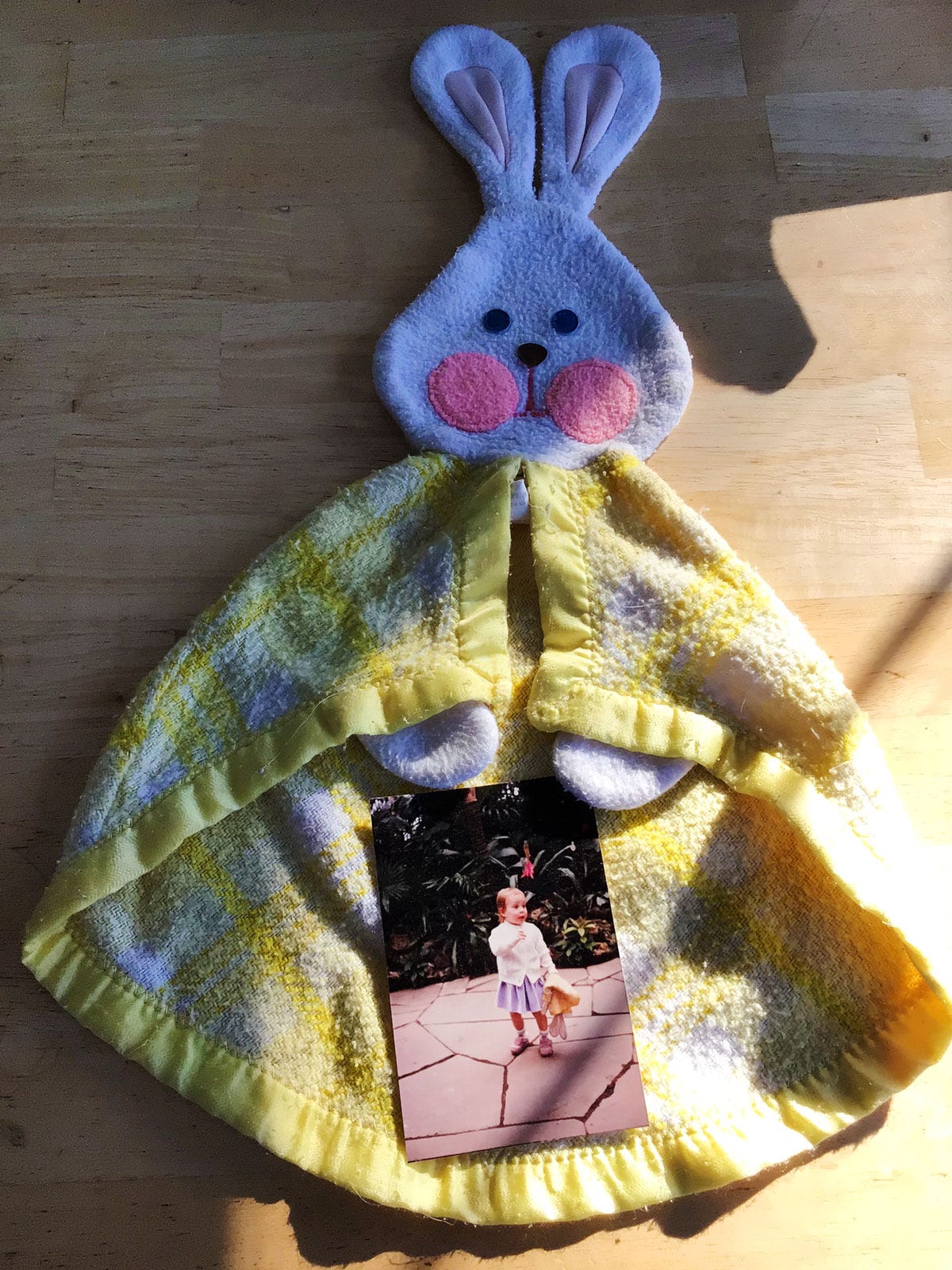 What is different is that my ode is done with songs, not film. It is something I live every Sunday morning, regardless of where I am. For instance, I am in Maine now, and when we travel, I take selected photos, her suicide note, and her manta teddy. Since we are gone for a while, I also brought the blanket bunny she carried since she was two. I always drape it over my shoulder during those Sunday mornings in her room.