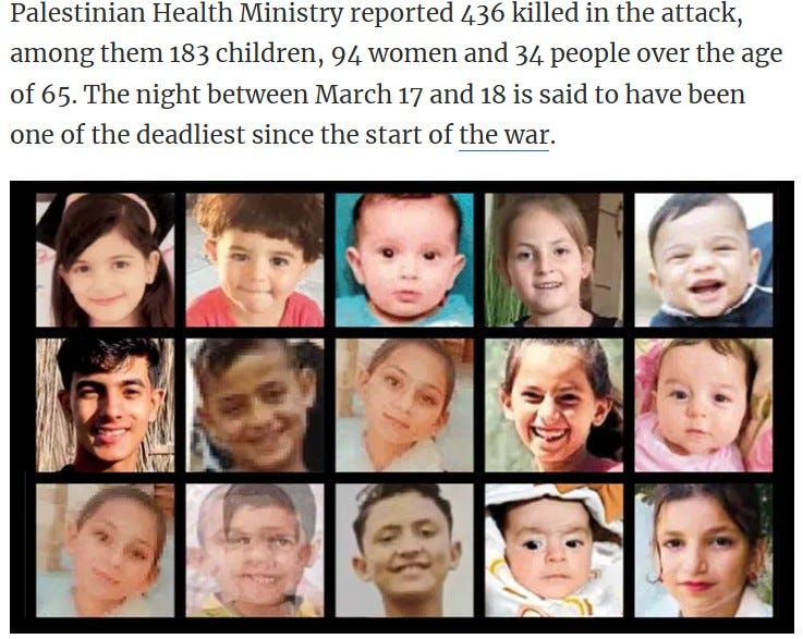 Haaretz reporters who investigated confirmed March 17 was “One of the Gaza War’s Most Horrifying Nights, the Israeli Army Killed Nearly 300 Women and Children.”