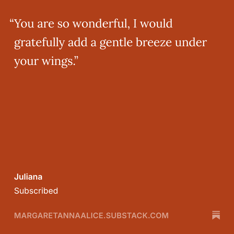 I especially want to thank those of you who have taken the time to write a private message to me when you subscribe. I read and cherish each note.