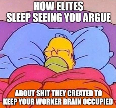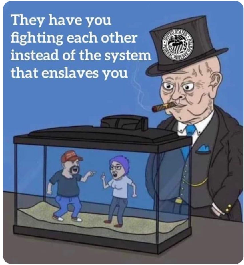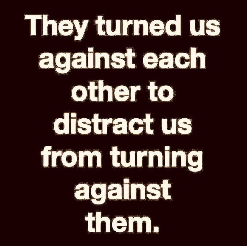 This behavioral conditioning demoralizes, splinters, and weakens the people while deflecting attention from the cruelites, who have been using their limitless wealth and power to astroturf tribal hatred for millennia.