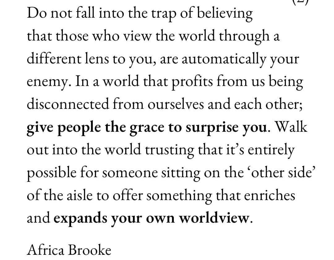 This echoes my own repeated plea to “to rehumanize one another so we experience each other face to face instead of as caricatured villains through screens.”